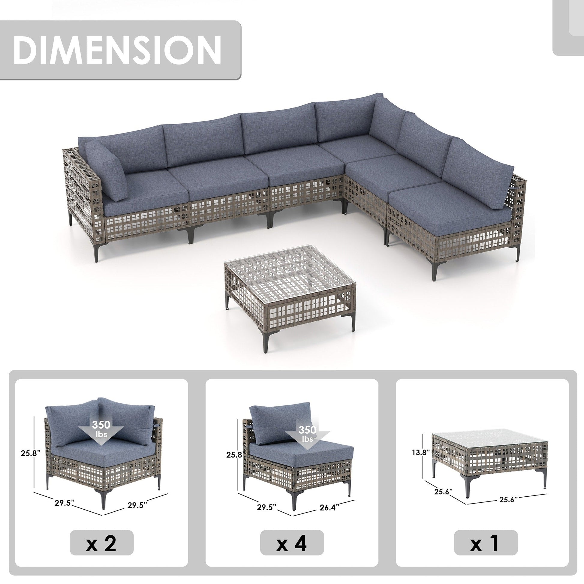 Size of corner chairs:29.5''D *29.5''W *25.8''H