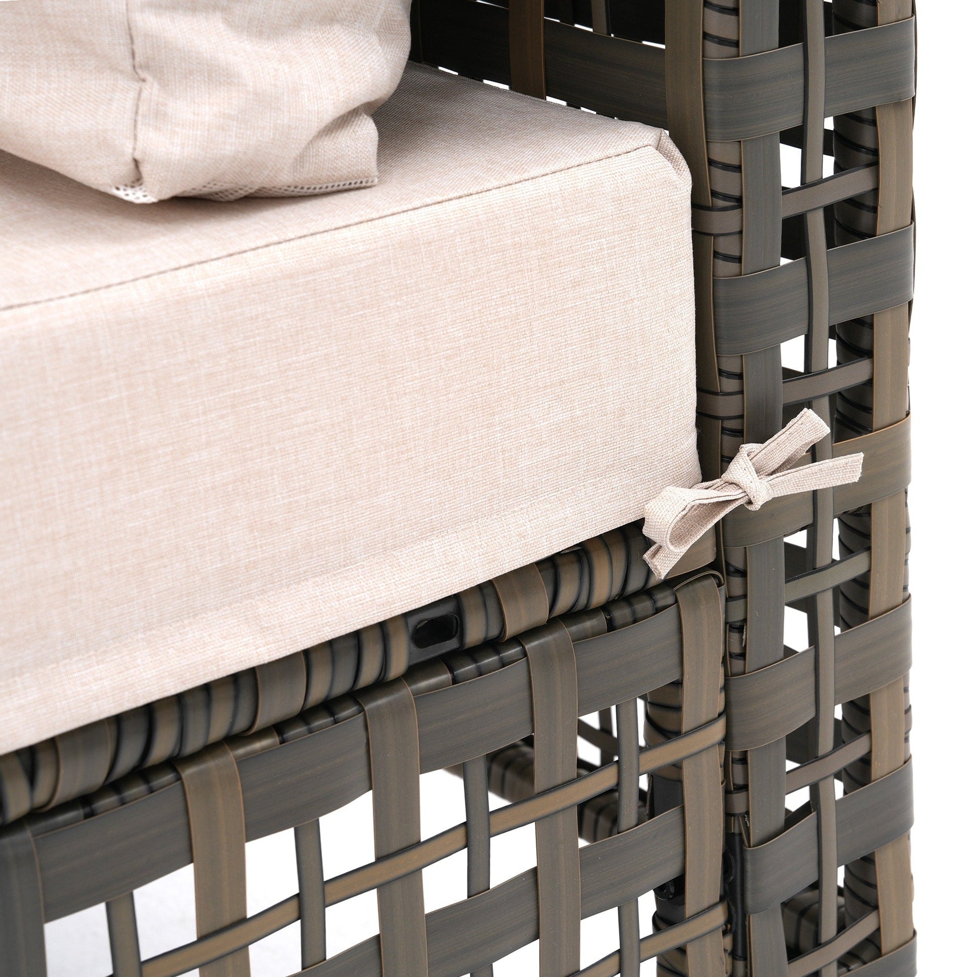 This outdoor sofa is made of handmade PE rattan winding process, with natural and tight texture, breathable and moisture-proof, durable. With high-density resilient foam cushions, the surface is waterproof technology fabric, soft touch and easy to clean. The rattan frame is made of geometric hollow winding, which is lightweight and not bulky. Available in different colors, it can be easily integrated into the garden, balcony or terrace, creating a comfortable and natural relaxation corner.