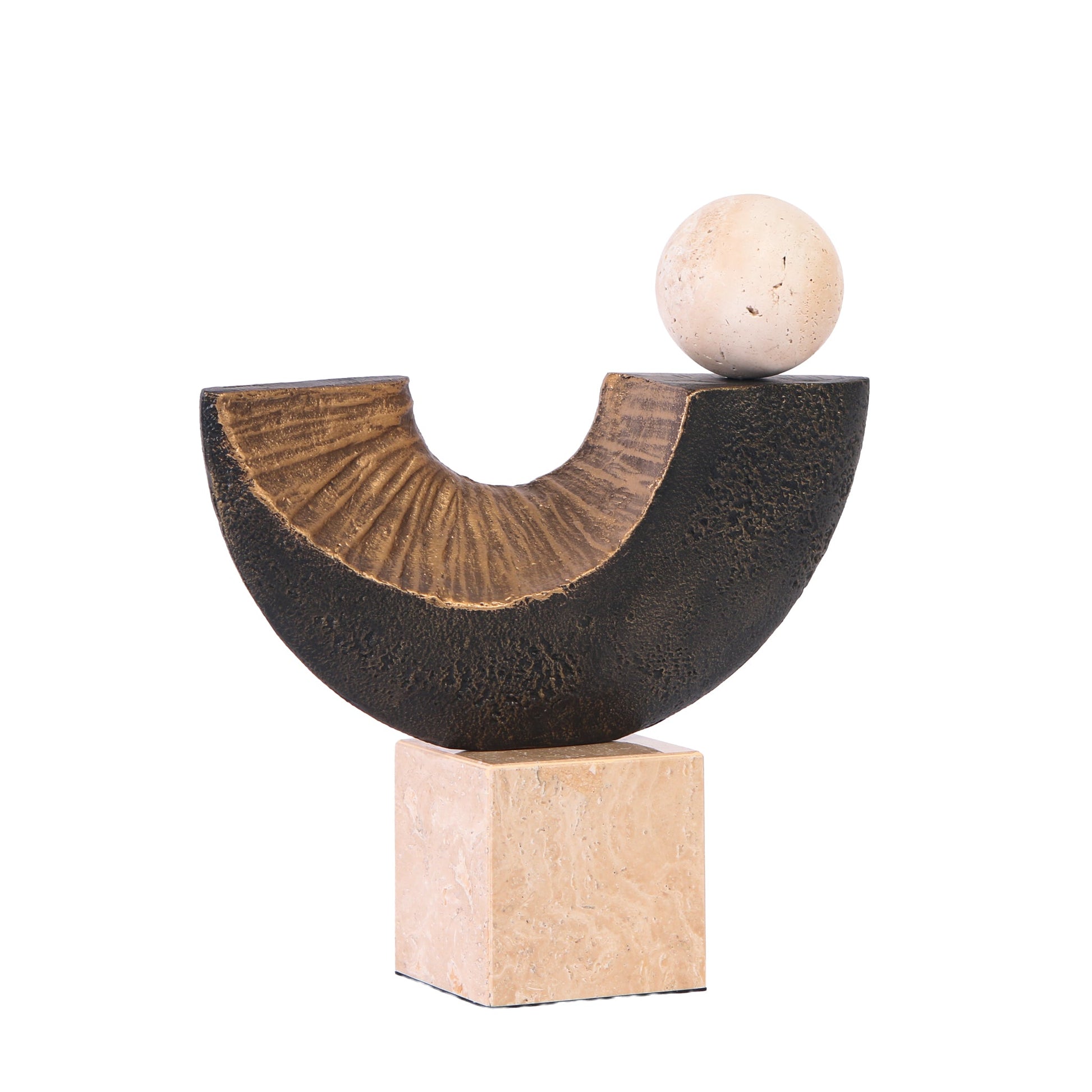 Beyond its visual appeal, the Bruni Balance Sculpture in Dark Bronze carries a symbolic resonance. The poised stone sphere atop the arch evokes ideas of stability, patience, and the delicate act of finding equilibrium in life.