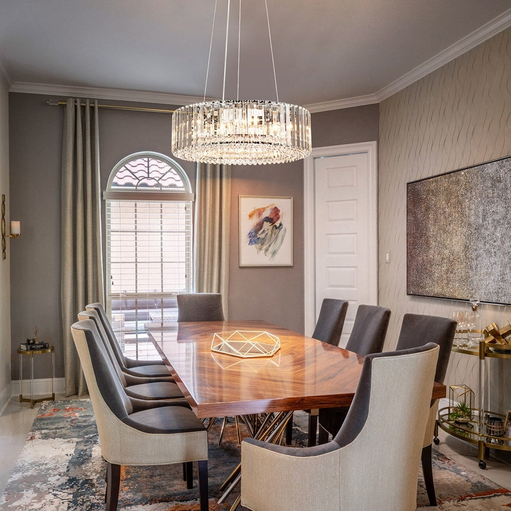 OYIPRO 6/8/12-Light Modern Round Crystal Chandelier Drum Shape Pendant Light for Kitchen Island