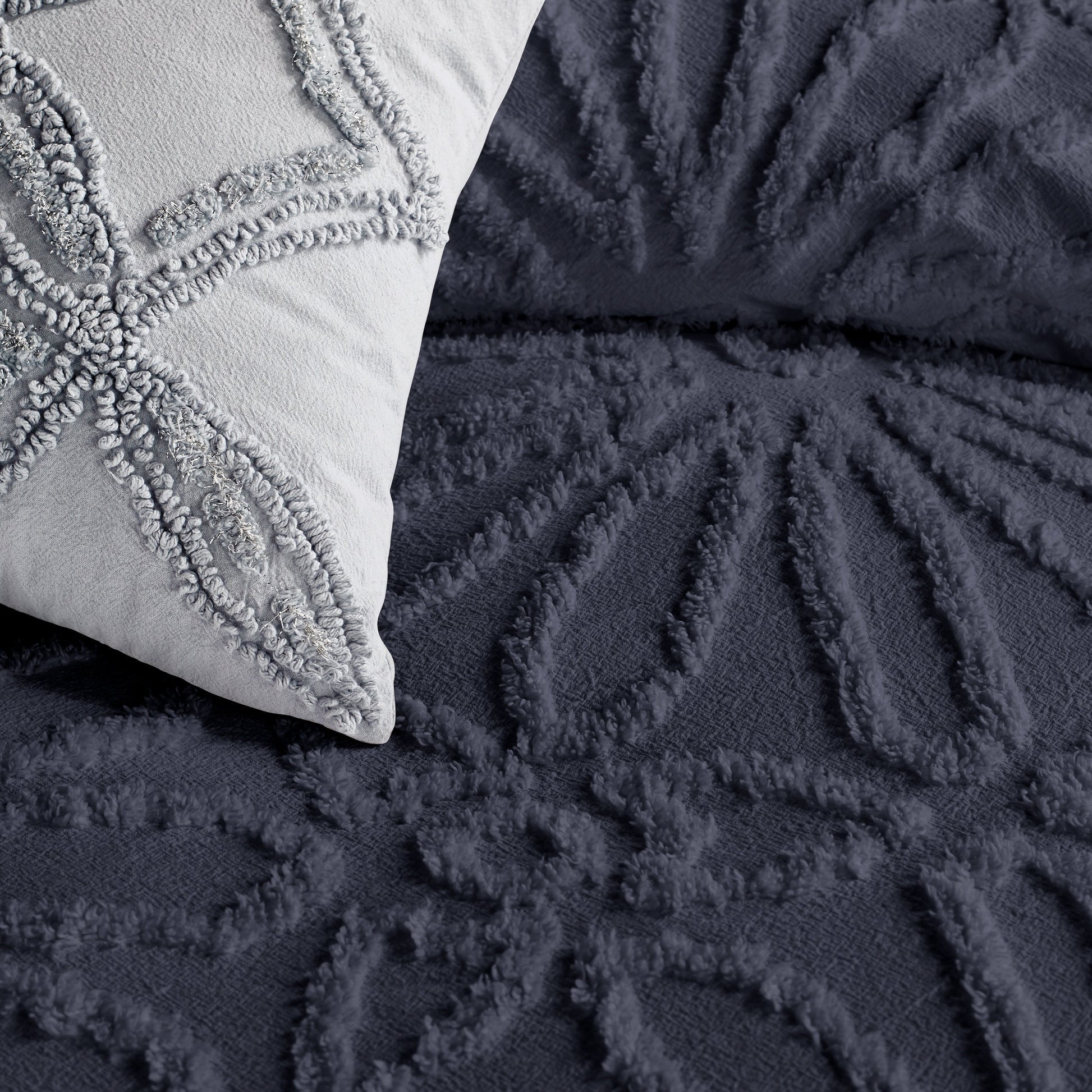 Refreshing your space just got easier with the Peri Home Chenille Medallion bedding in white or navy. With intricate chenille tufted details this 100% cotton comforter set will charm you with its subtle medallion pattern. Playful ribbons on the sham add the final touch to send you into sweet dreams.