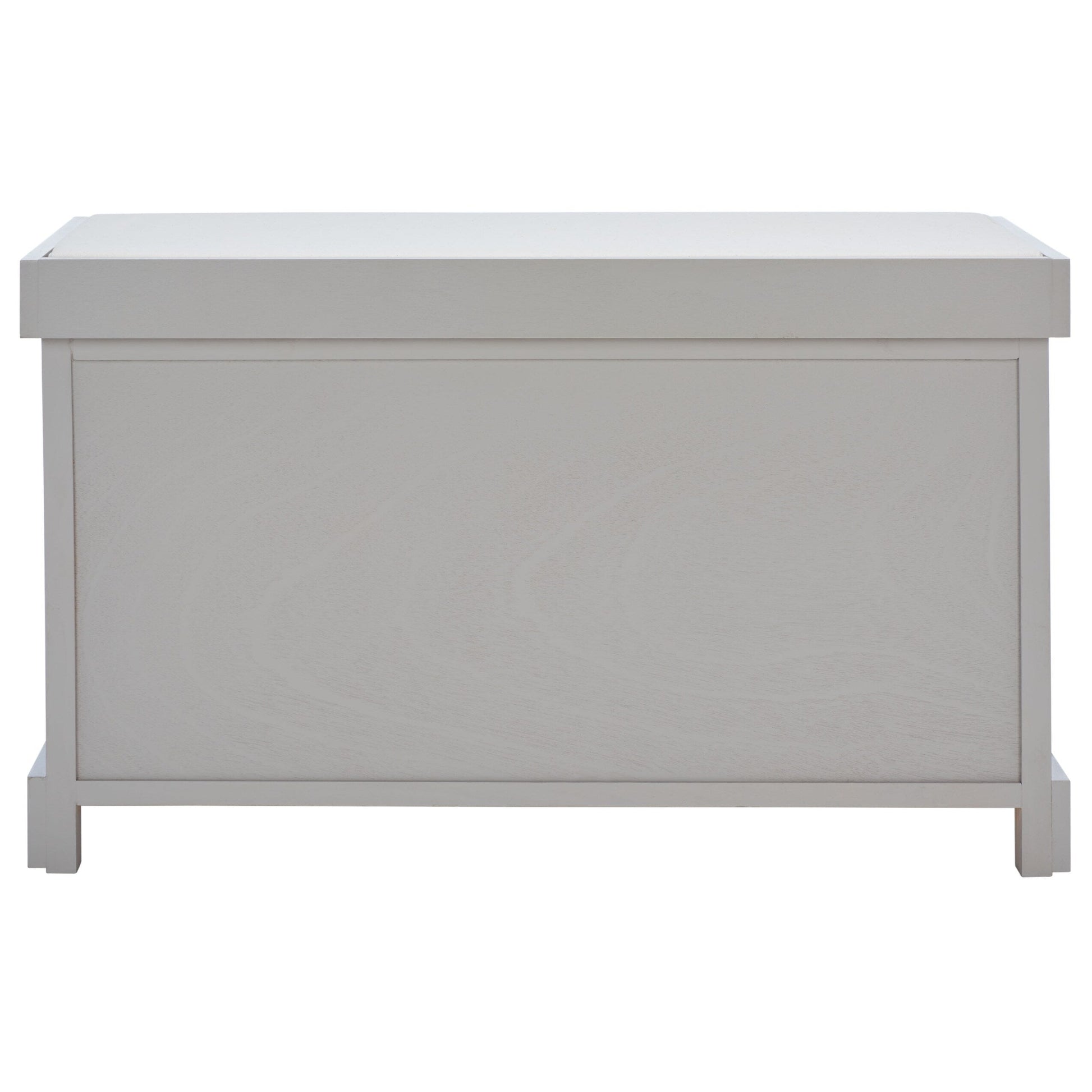 Sit back and relax. This charming storage bench with pine wood frame and linen upholstered seat is perfect for changing shoes in an entry hall, and its woven baskets can hold towels and other necessities in a master bath. A versatile piece in any room.