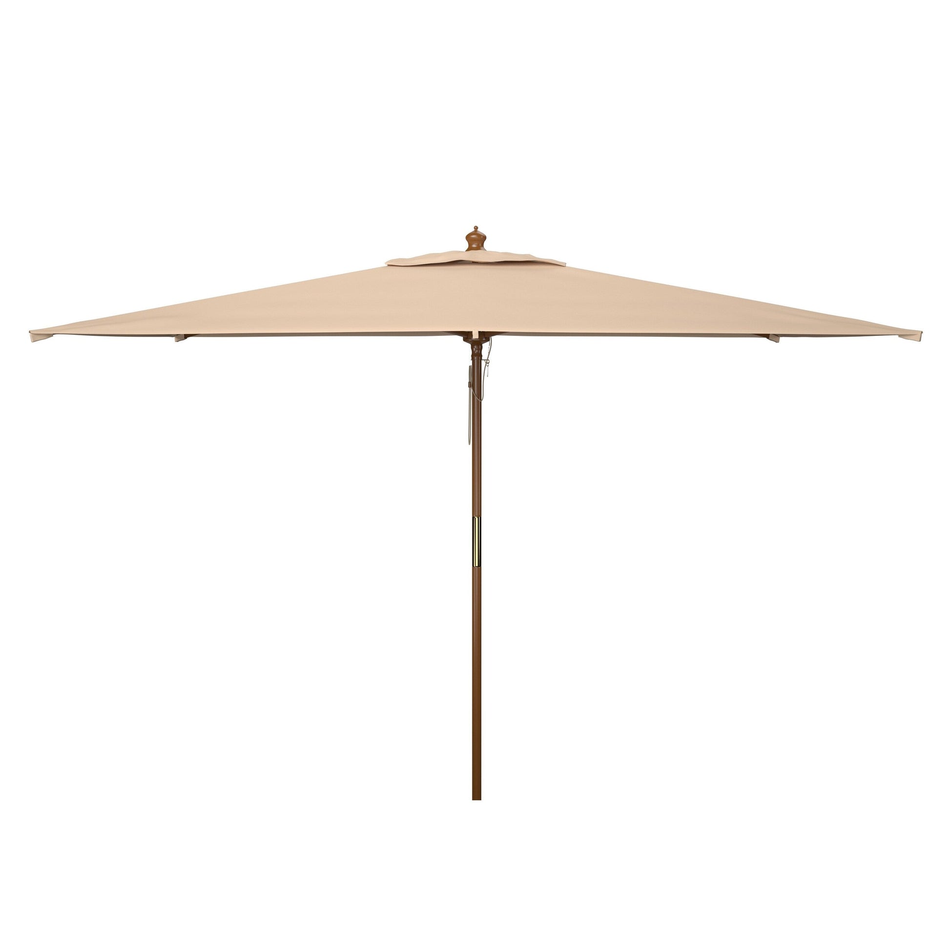 Provide shade and protection in style with our market umbrella. The elegantly simple design of our umbrella adorns a natural color to harmonize with any outdoor setting. It features an easy-to-use pulley system to allow for smooth open and close operation. A perfect blend of style and practicality, our tall and graceful umbrella is crafted with wood with a PE coating for long-lasting durability. Perfect for residential use, our market umbrella vouches for a comfortable stay outdoors.