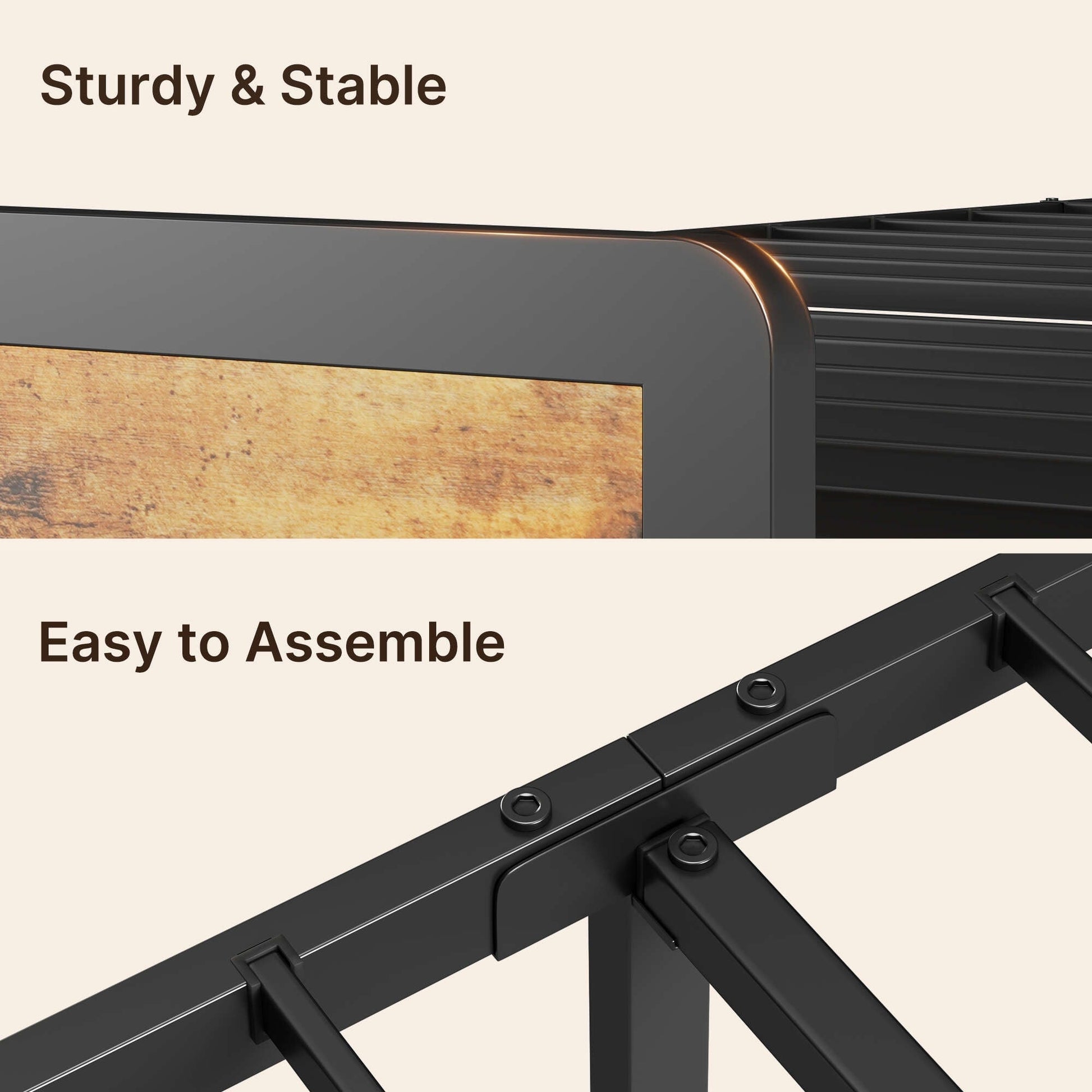 - Sturdy Metal Construction: The durable metal frame provides robust support for your mattress while maintaining an elegant, minimalist look. Its reliable build ensures stability and long-lasting durability.