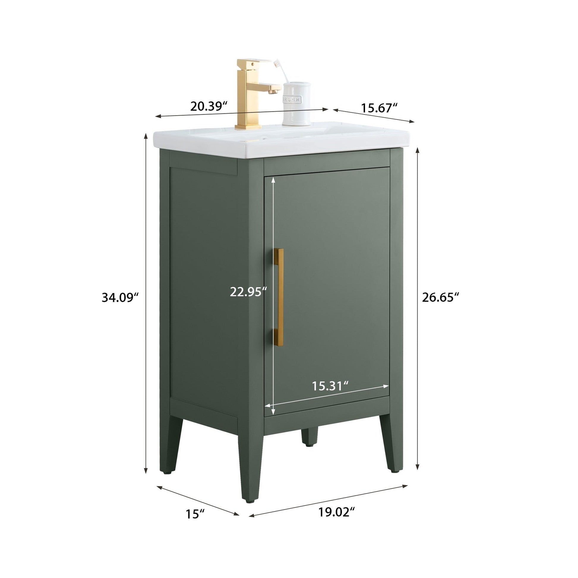 Vanity Art 20 or 24 or 30 Single Sink Bathroom Vanity Cabinet with Ceramic Top
